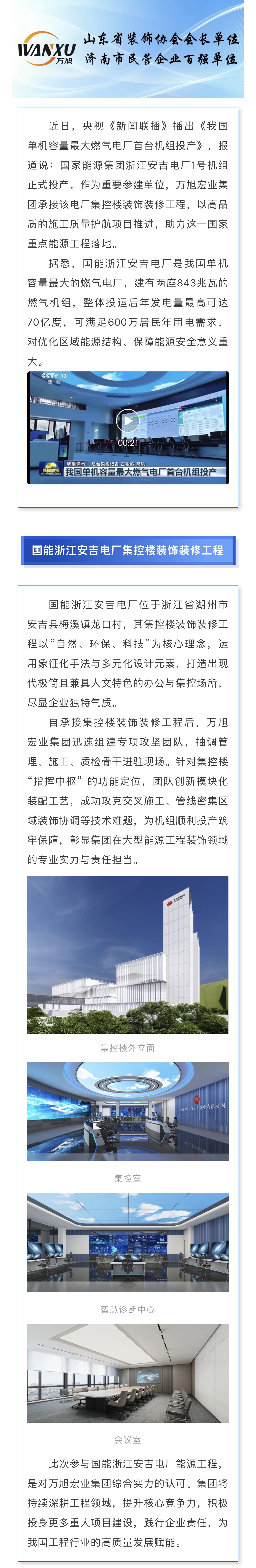 作品再上央视!万旭宏业集团助力我国单机容量最大燃气电厂建设