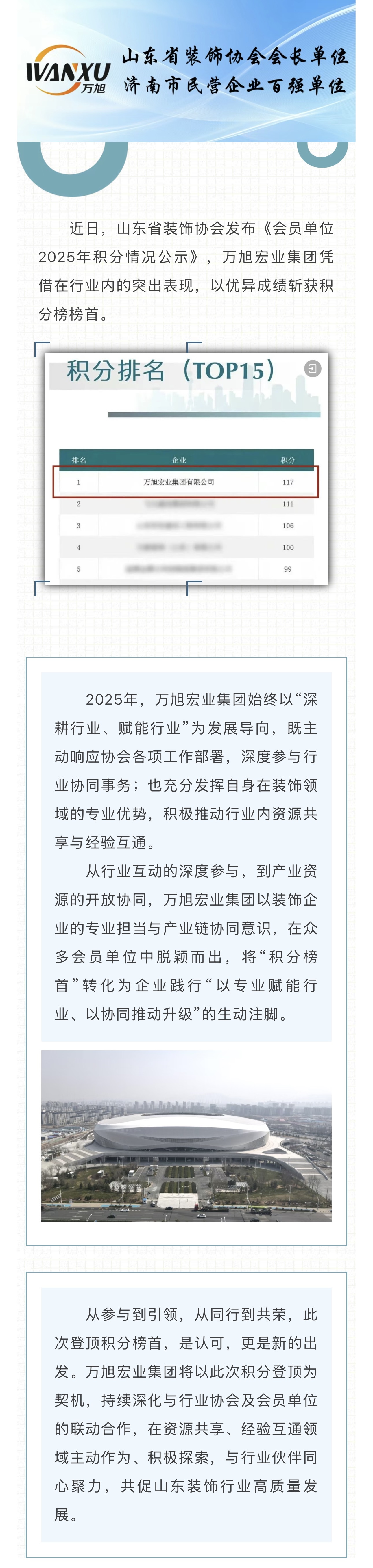 万旭宏业集团荣登山东省装饰协会2025年度会员积分榜首